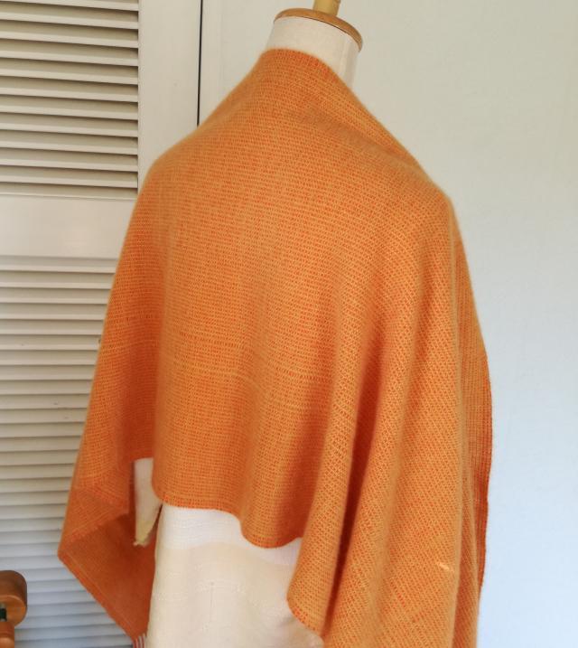 シンプルでありながら透かしたときに分かる程度の霞のような柄織り、長めのフリンジもアクセントです。